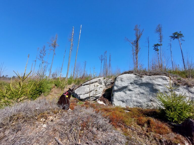 Před pár lety tohle místo poznamenal kůrovec, proto část lesa chybí, ale pomalu a jistě tam nové stromky nabírají na své síle.